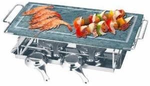 Pietra Ollare Da Tavolo: P set composto da pietra ollare da cm 20x35, 1 piatto con supporto e portapietra in acciaio.